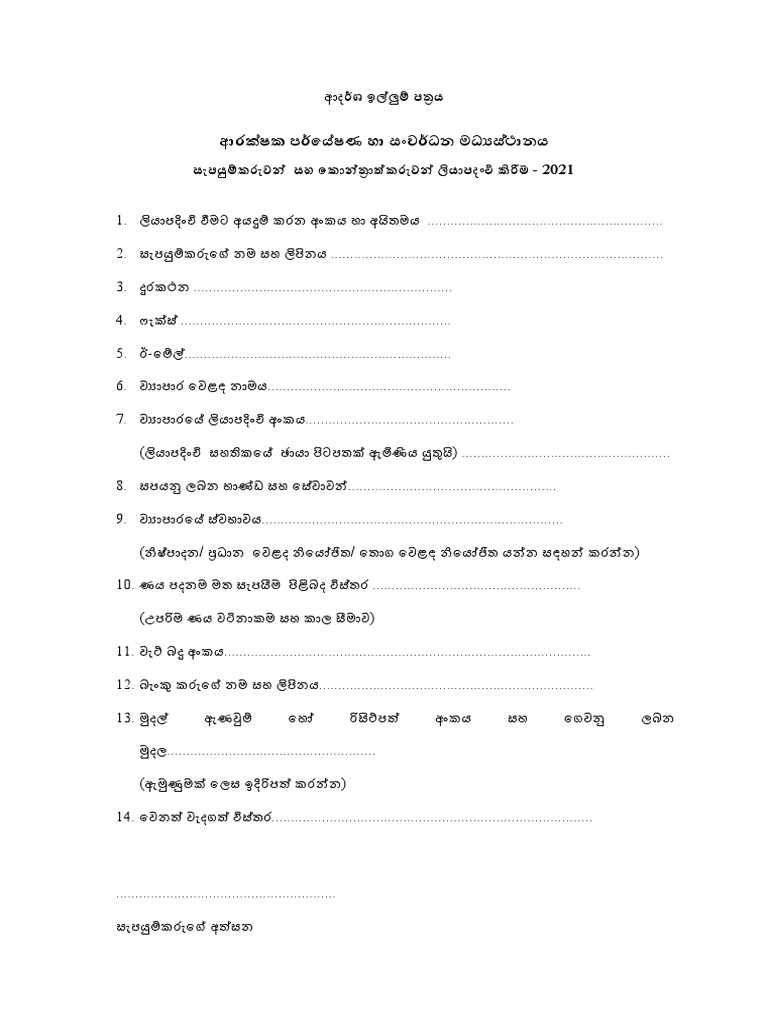 Application Form Sinhala PDF